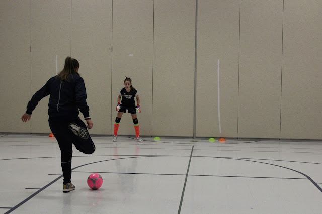 Erica showed Kaylee where to position on corner kicks and catches